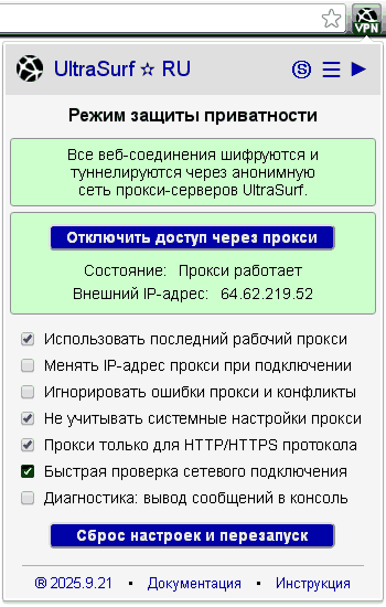 Этот выпуск продолжает "классическую" линейку UltraSurf VPN RU – отдельную серию автономных приложений с новыми возможностями управления прокси, предназначенную для пользователей, ждущих от расширения лёгкости и удобства, чтобы можно было "просто включить и работать", меняя простые и понятные настройки только по необходимости.
