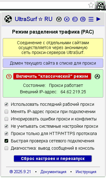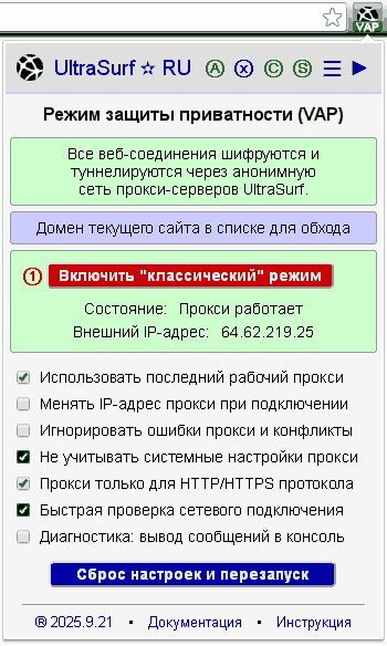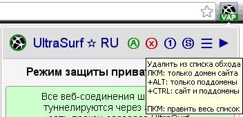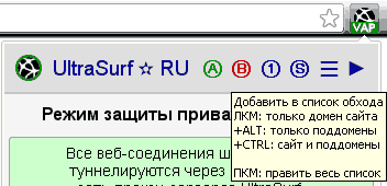 В материале описаны дополнительные функции и особенности работы расширения UltraSurf VPN RU, указаны его основные отличия от прототипа, даны краткие советы и инструкции по применению и настройке.
